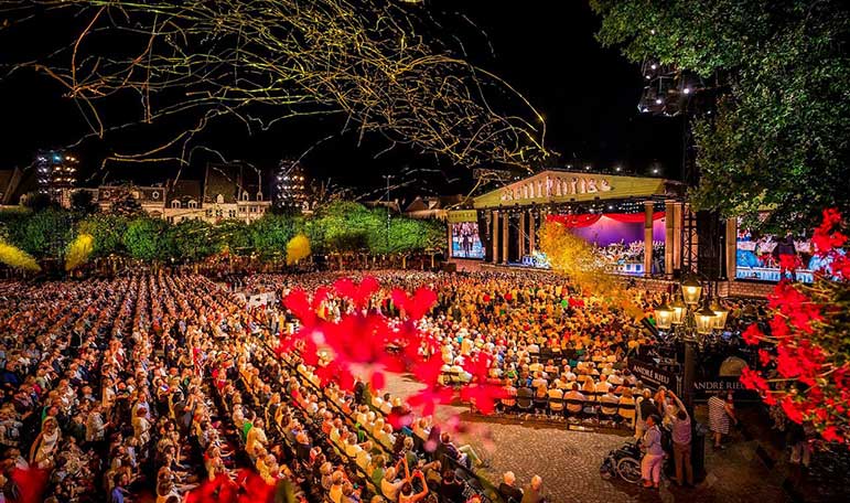 Koncert med valsekongen André Rieu og hans Johan Strauss Orchestra i Maastricht - Det bliver en fantastisk oplevelse, du aldrig vil glemme. André Rieu spiller under åben himmel midt på Vrijthof pladsen i Maastricht.