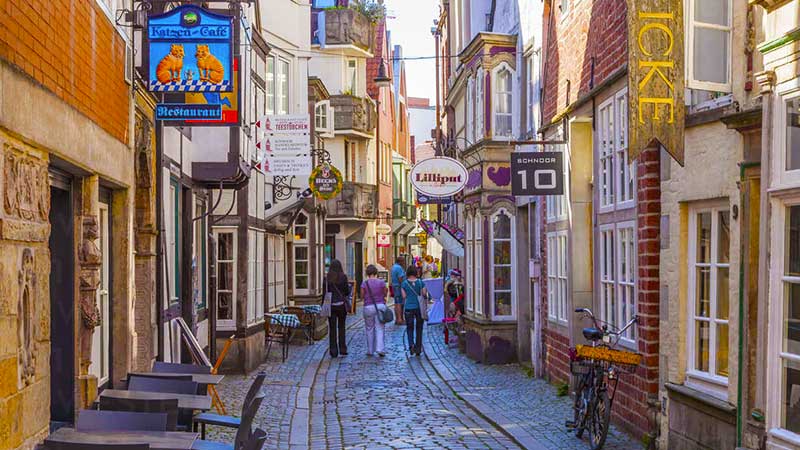 En spadseretur gennem Schnoor-kvarteret tager dig tilbage til middelalderen. De smalle brostensbelagte gader, små farverige huse og hyggelige caféer skaber en stemning, der er svær at finde andre steder.