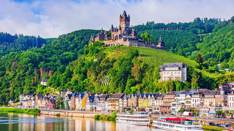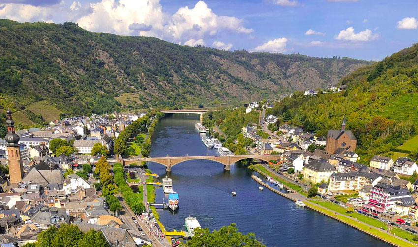 Skibet sætter kurs mod Cochem. Turen sejles på Mosel, hvor du fra begge sider af skibet, kan opleve et at verdens absolut smukkeste og mest frodige naturområder.