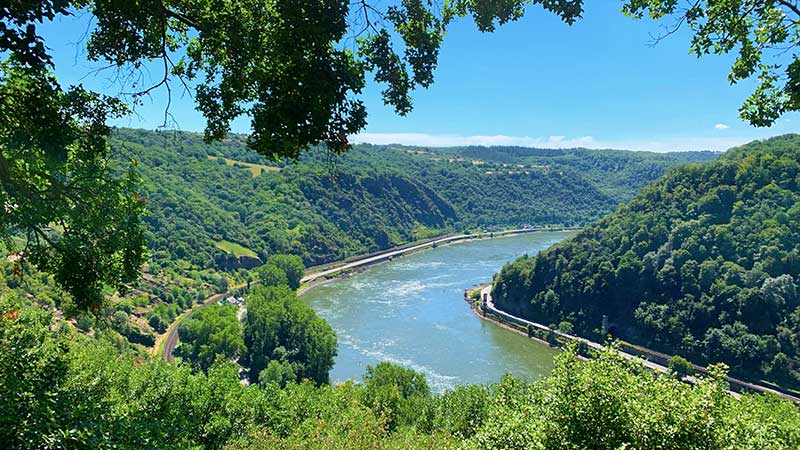 Sidst på eftermiddagen fortætter sejladsen videre ad Rhinen, forbi de idylliske vinbyer, middelalderborge, vinstokkene på skråningerne samt den sagnomspundne Lorelei-klippe (ifølge sagnet, sidder den smukke troldkvinde Lorelei her og reder sit lange hår; med sin sang fortryller hun skipperne, så de forliser mod klippen.)