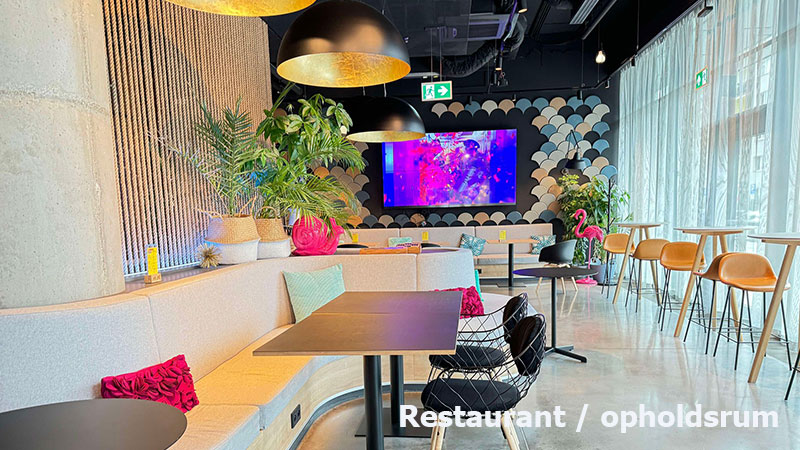 Bemærk morgenmadsrestauranten er lidt anderledes indrettet end hvad man måske normalt er vant til og har lidt begrænset udvalg - her kan man vælge at sætte sig hvor som helst, hvadenten det er ved baren, sofaerne, eller det store langbord eller andet sted i lobbyen.