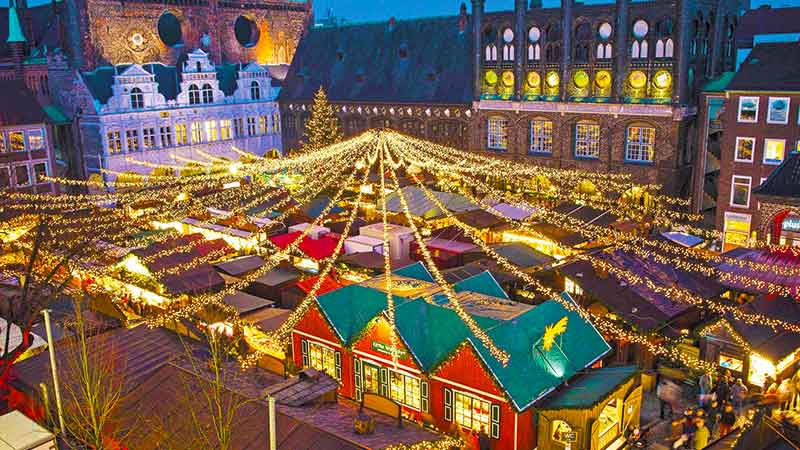 Slentre gennem Lübecks gamle bydel, der er pyntet med glitrende lys og fyldt med duften af ​​julekrydderier. Besøg de velkendte julemarkeder, hvor boderne bugner af håndlavede gaver, julepynt og lækre lokale delikatesser.